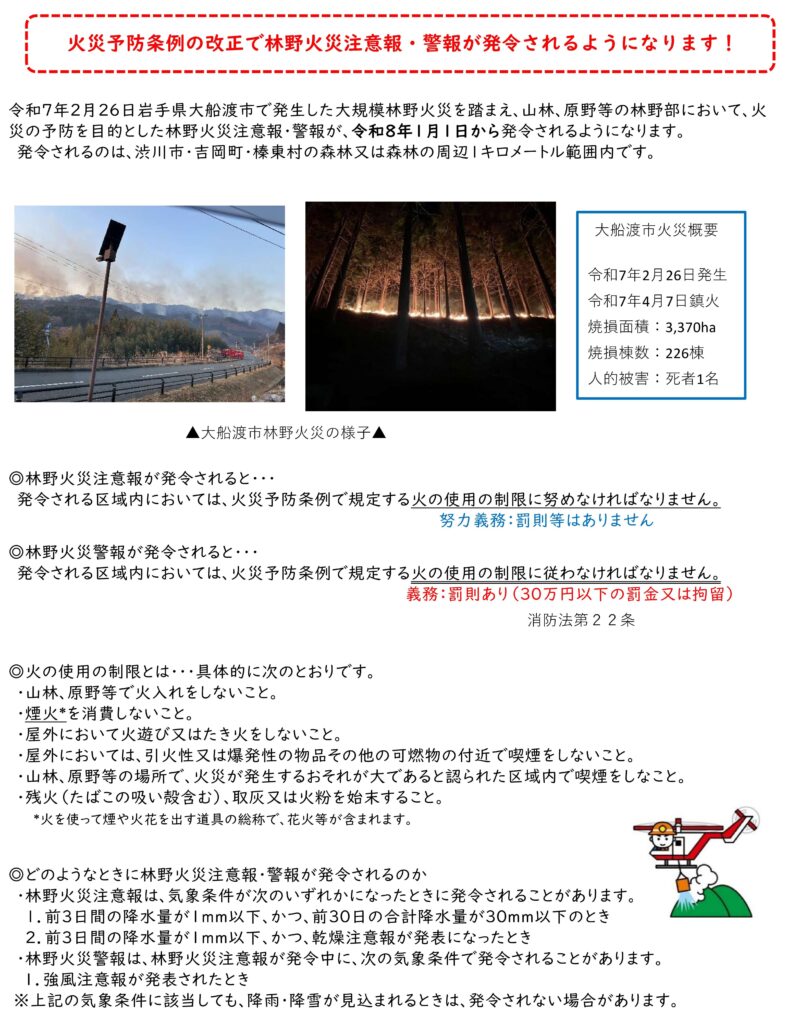 林野火災注意報・警報が発令されるようになります!