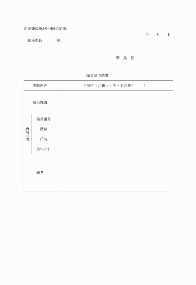第4条 職員証は、職員となったとき貸与するほか、次の各号のいずれかに該当する場合、再貸与することができる。